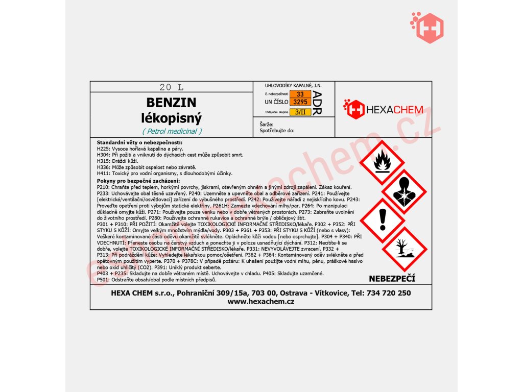 | Transport (ADR) | UN 3295, Węglowodory ciekłe, i.n.o., 3, II, (D/E), Kat. transportowa: 2, Zagrożenie dla środowiska: tak, Kod klasyfikacyjny: F1 |